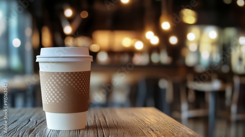 Coffee Cup Sleeve Template on Blurred Cafe Background for Branding Design.