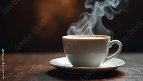 Coffee cup with swirling smoke, close-up view , warm, image, cafe