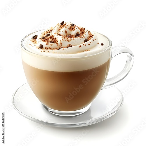 Coffee Delight: A steaming cup of coffee, artfully adorned with a swirl of creamy whipped cream and a sprinkle of chocolate shavings, presented on a delicate saucer. A sensory treat.