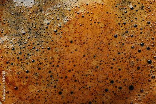 Coffee foam in the cup, close-up, top view