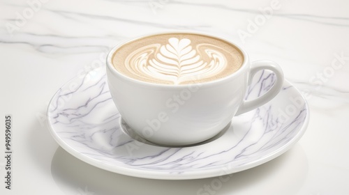 Coffee Latte Art in a White Cup on a Marble Surface