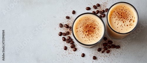Coffee Latte Duo in Café Setting Flat Lay