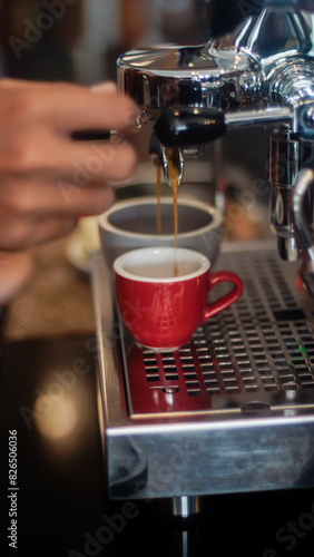 Coffee machine pouring espresso