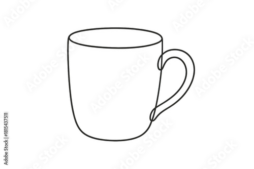 Coffee mug line art illustration on transparent background depicting a simple outline drawing for breakfast beverage