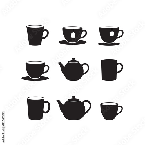 coffee mug tea cup and kettle pot icon collection set silhouette vector flat design element