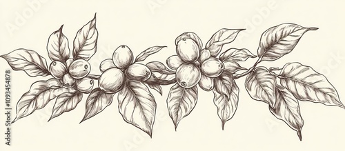 Coffee Plant Branch Illustration: A Detailed Hand-Drawn Sketch of Coffee Berries and Leaves