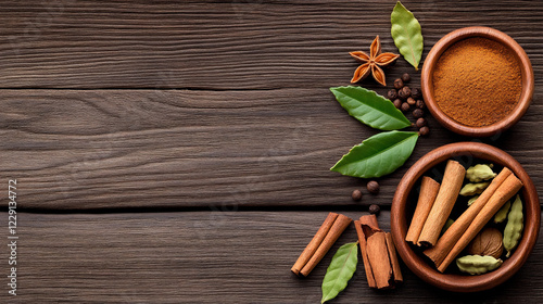 Coffee Preparation Tools and Spices Arranged on Wooden Surface for Brewing Rich Flavors