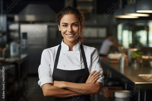 Coffee shop, crossed arms and portrait of woman in cafe for service, working and professional in bistro. Small business owner, restaurant startup and female waiter smile in cafeteria ready to serve