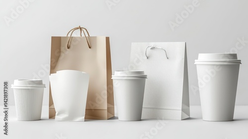 Coffee shop packaging mockups, minimalist background, various sizes, for design inspiration