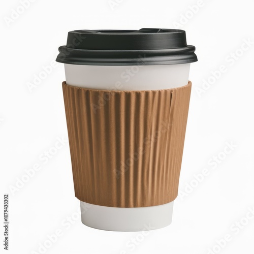 Coffee To Go: A perfectly presented disposable coffee cup with a brown cardboard sleeve and black lid, ready for your morning commute or afternoon pick-me-up.
