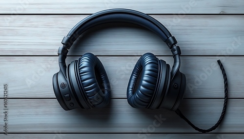 Coiled Cord Headphones Mockup on Light Wooden Surface