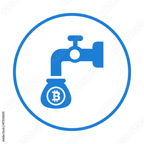 Coin, faucet, bitcoin, cryptocurrency, mining icon. Blue vector design.