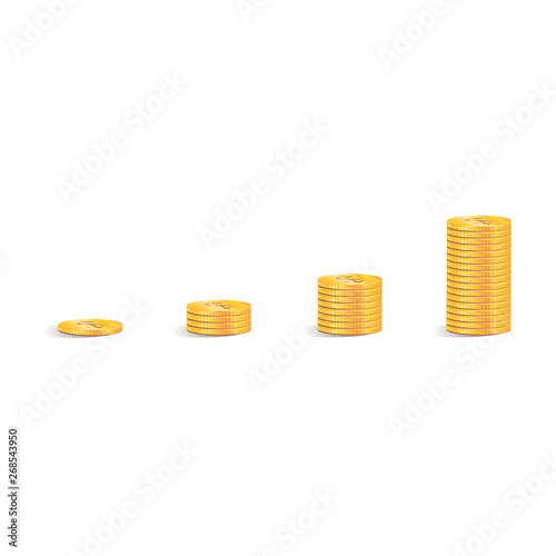 Coin icon. A stack of gold coins as a graph of income. Vector illustration