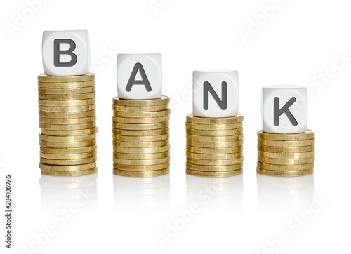 Coin stacks with letter dice - Bank