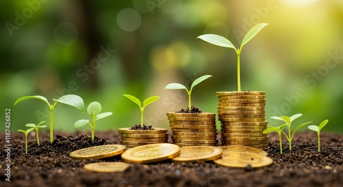 Coins and plants symbolize growth and sustainability in investment strategies.