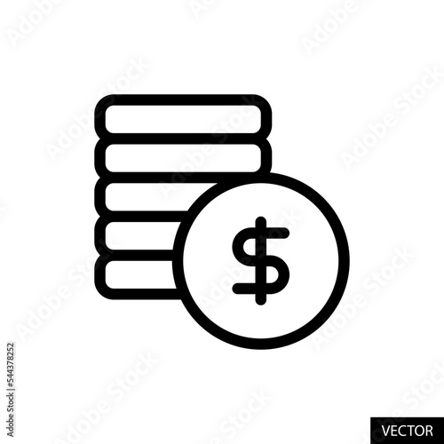 Coins stack, Revenue, Money vector icon in line style design for website, app, UI, isolated on white background. Editable stroke. Vector illustration.