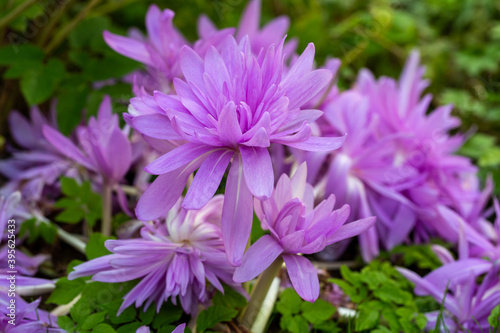Colchicum Waterlily purple flowers in garden