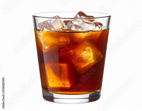 Cold Brew Coffee in Glass with Ice Cubes, Transparent PNG, Beverage shot capturing