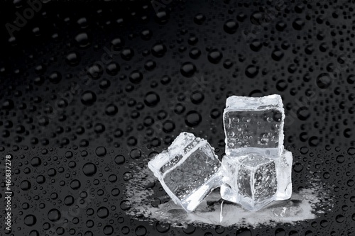 Cold clean ice cubes with drops on the desk