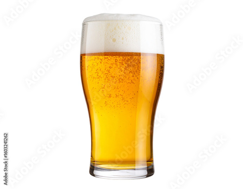 Cold Glass of Beer with Frothy Foam, Isolated on Transparent Background