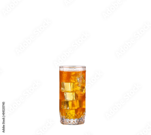 Cold glass of iced tea with ice cubes, isolated on white background with clipping path