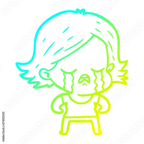 cold gradient line drawing cartoon girl crying