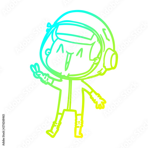 cold gradient line drawing happy cartoon astronaut giving peace sign