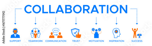 Collaboration banner web icon vector illustration concept for teamwork and working together with icon of support teamwork communication trust handshake motivation inspiration and success.