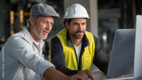 Collaboration between Worker and Engineer with Computer in Soft Light