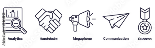Collaboration icon set vector illustration concept with icon of analytics, handshake, megaphone, communication, success