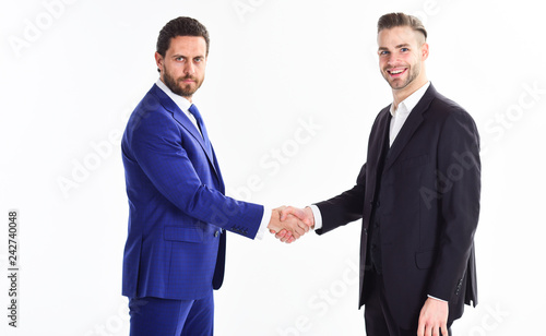 Collaboration of business people. Men shaking hands. Handshake sign of successful deal. Business meeting. Business deal leaders company. Capital merger. Glad to meet you. Thank you for cooperation