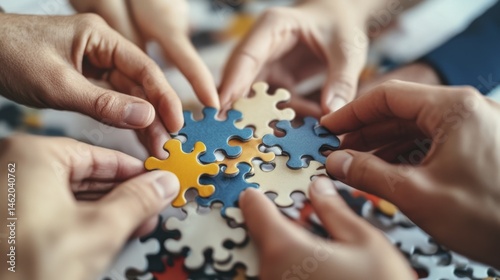 Collaborative effort of diverse hands assembling jigsaw puzzle pieces