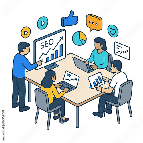 Collaborative SEO Team Meeting - Data Analysis and Strategy Session.