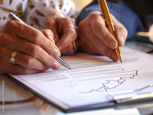Collaborative Signing Process of Important Documents by Two Individuals in Bright Office Environment