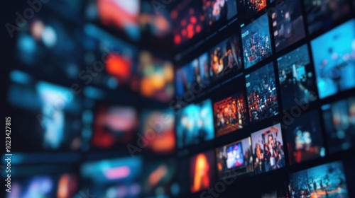Collage of colorful abstract images on digital screens.