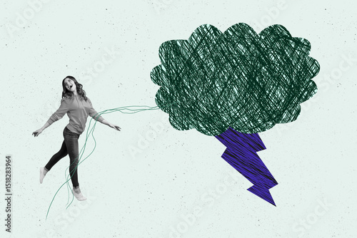 Collage of person running with speech bubble representing thoughts ideas mind communication and emotions