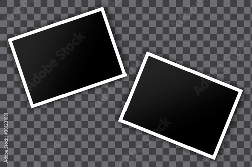 Collage of photo frames. Blank image. Empty templates. Black pictures with white frames. Vector illustration. Stock image.