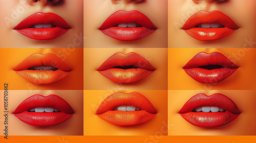 Collage with photos of young woman with lipsticks, closeup. Banner design