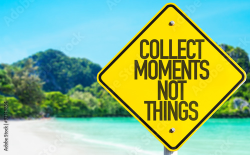 Collect Moments Not Things sign with beach background