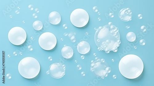 Collection foam bubble on blue background on top view object beatuy health care concept design