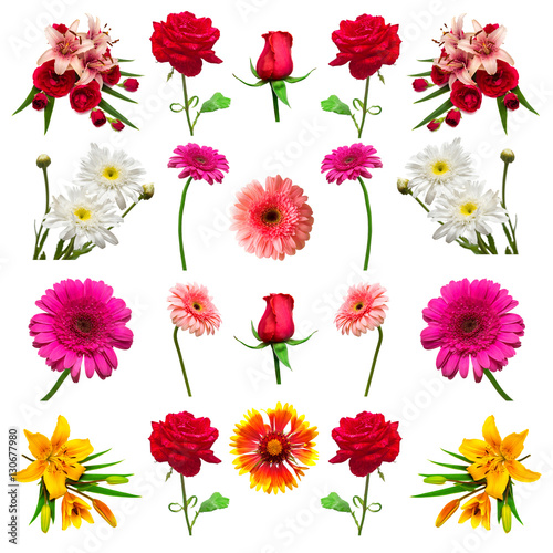 Collection flowers isolated on white background