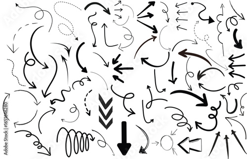 Collection hand drawn arrows. Set simple arrows isolated on white background. Arrow mark icons. Arrow paint - stock vector.Way direction arrow sign icon set.