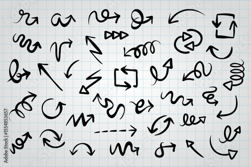 Collection hand drawn arrows. Set simple arrows isolated on white background. Arrow mark icons. Arrow paint