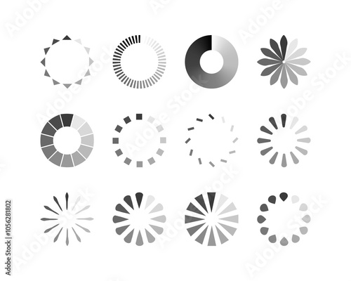 Collection Loading bar status icon. Vector illustration. Set of vector loaded icons. Download progress. Donload or Upload.