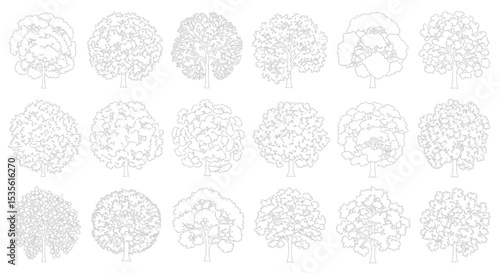 Collection of 18 Line Art Treetop Illustrations Perfect for Design Projects