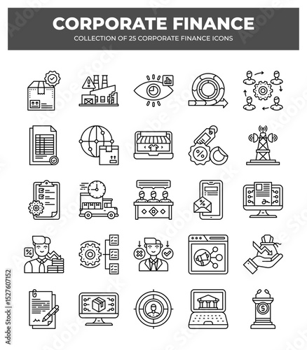 Collection of 25 Corporate Finance Icons: Streamline Your Business Visuals