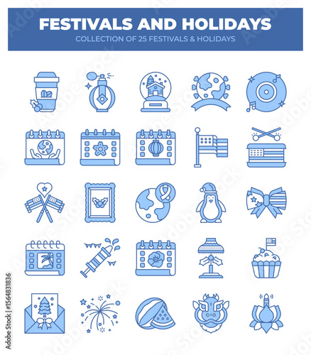 Collection of 25 Festivals and Holidays. Line Art Icons