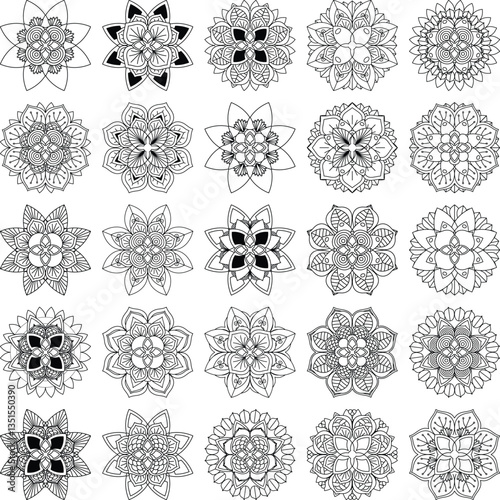 Collection of 25 intricate mandala vectors, perfect for cutting, engraving, sublimation, and decoration.