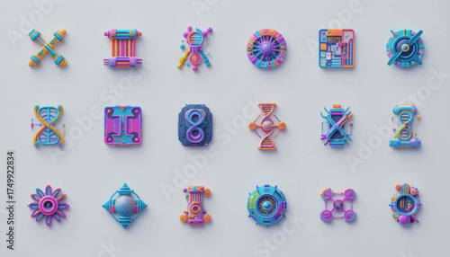 Collection of abstract geometric icons colorful 3D render design elements isolated on white background for app and web design