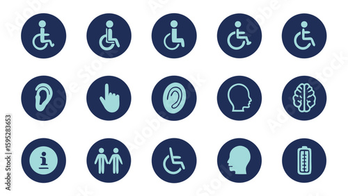 Collection of accessibility and information icons in a grid layout